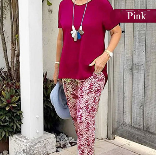 Summer casual top + pants two-piece set, wear a relaxed feeling on your body ✨ The top is simple and casual, the loose version is breathable and hides the flesh; the pants have unique prints and neat cuts that show vitality.