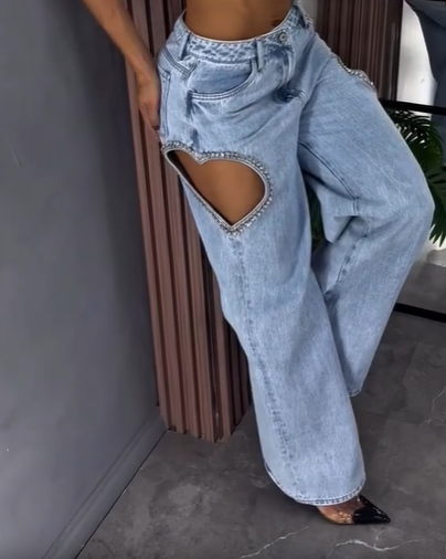 🌟2025 New Women's Heart Hole High Waist Wide Leg Jeans