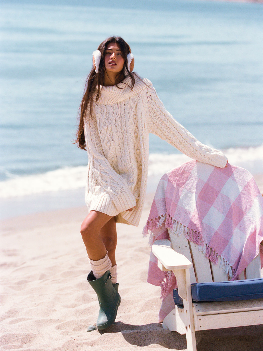 Cable Knit Turtle Neck Long Sleeve Mini Dress