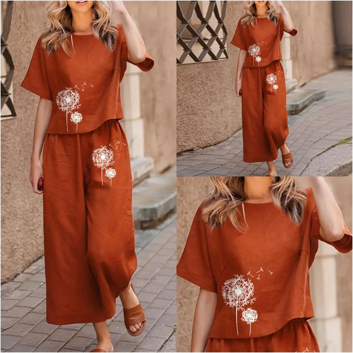Fashionable women's summer cotton and linen comfortable casual set
