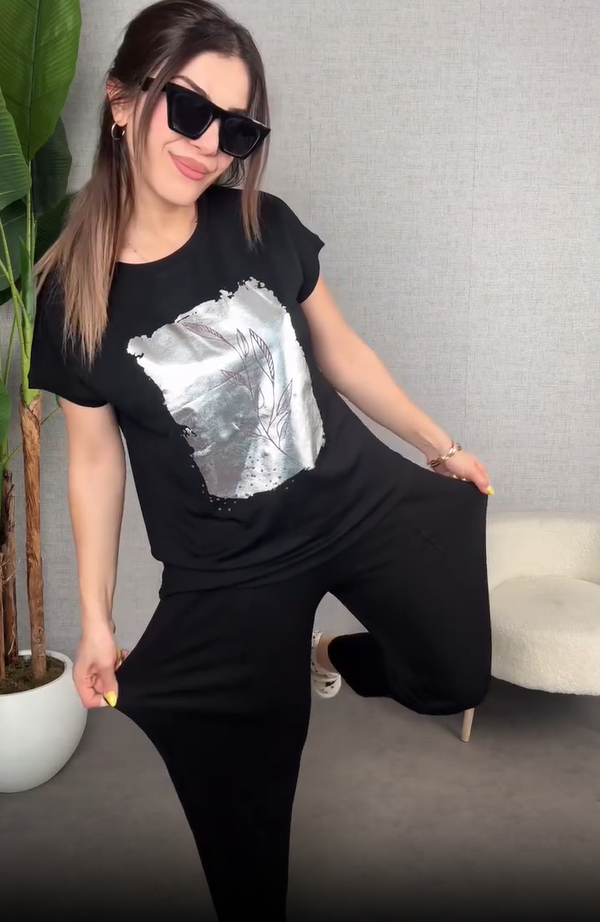 Fashionable women's summer loose top and pants set