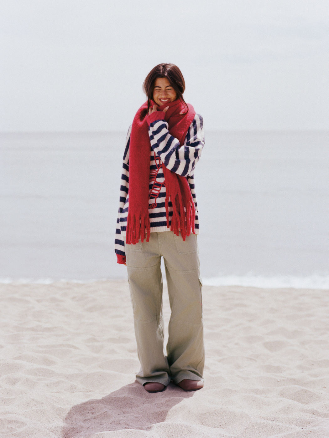 Knit Stripe Lobster Graphic Long Sleeve Contrasting Binding Oversized Sweater