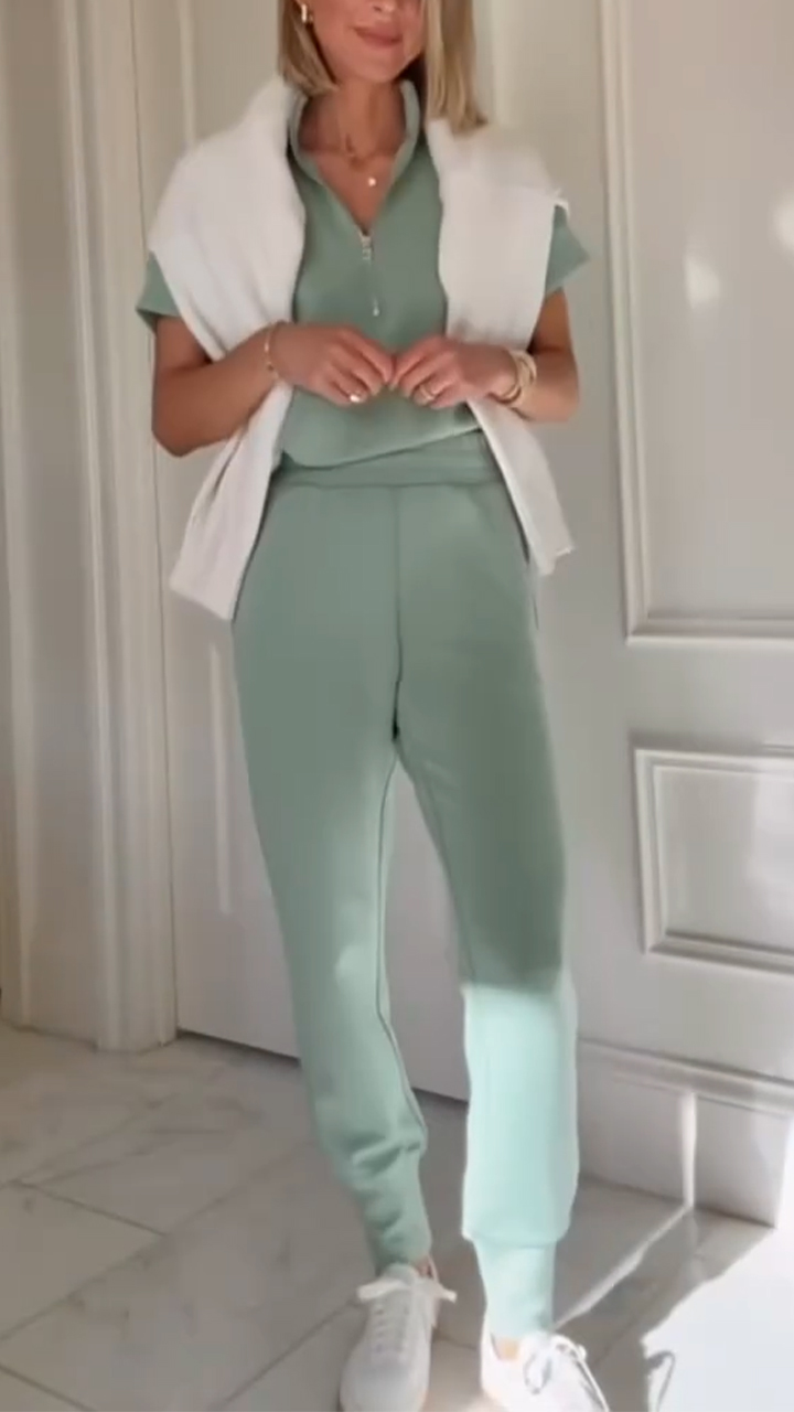 Ladies Lapel Half Zip Casual Suit