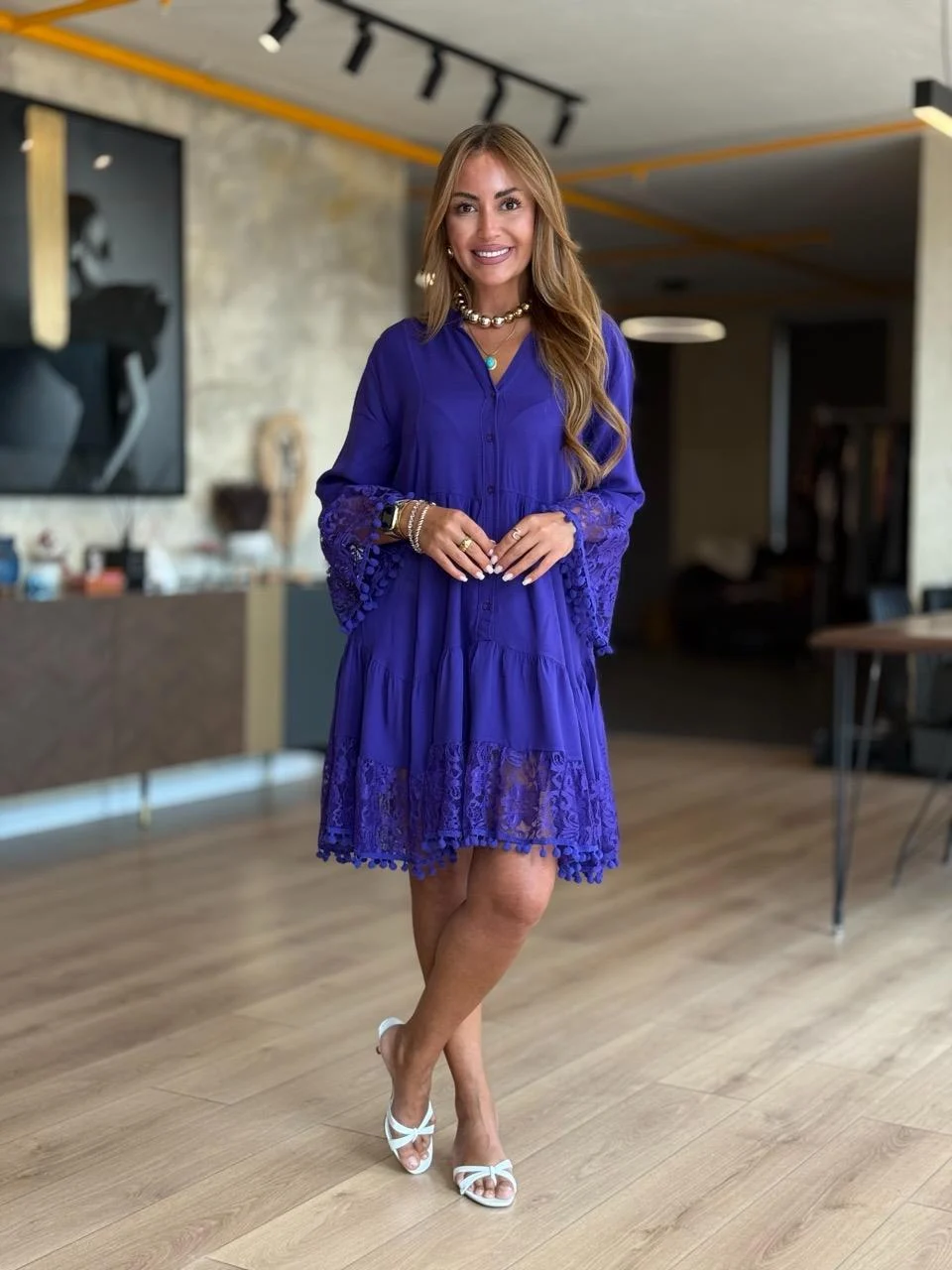 Ladies Spring and Summer Fashion Lace Splicing Dress