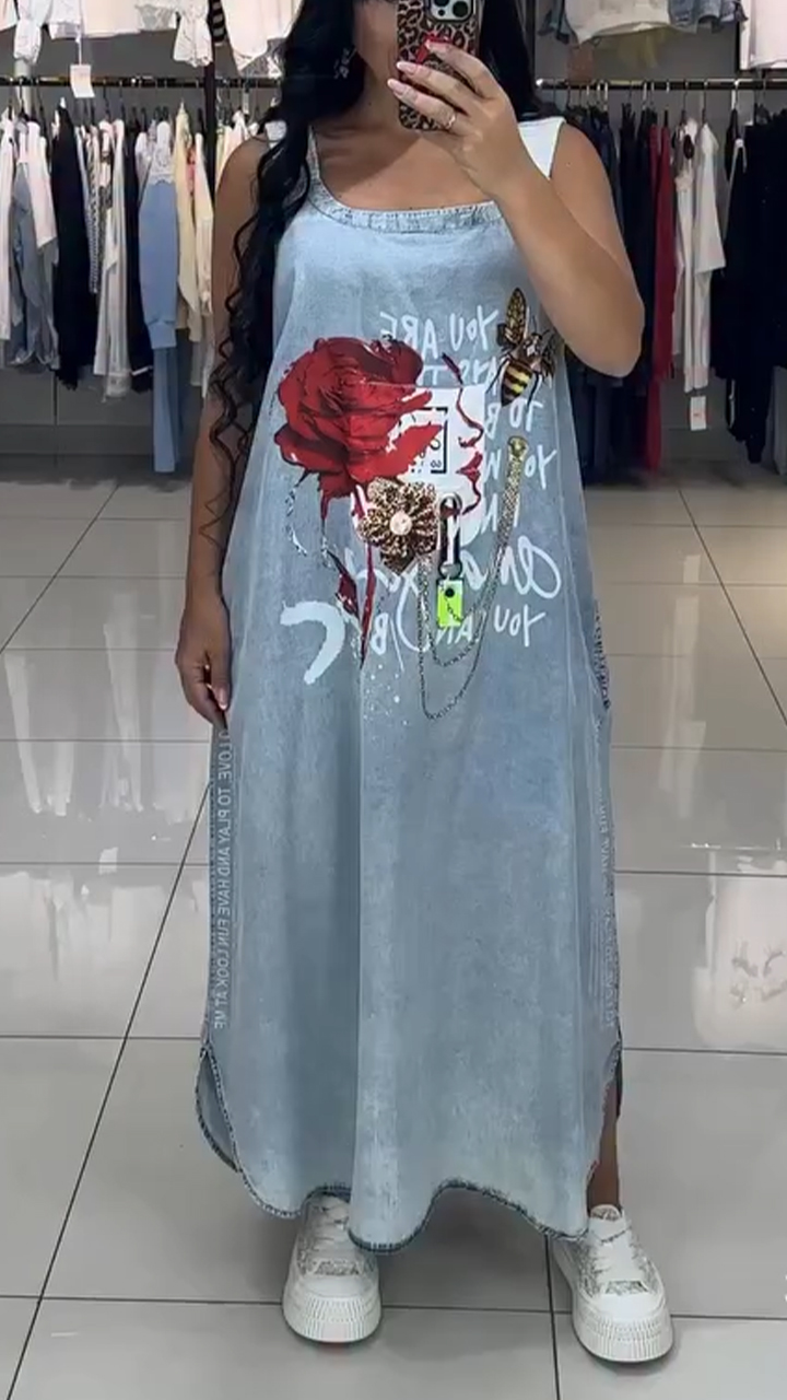 Ladies' U-neck Printed Wash Water Loose Casual Dress