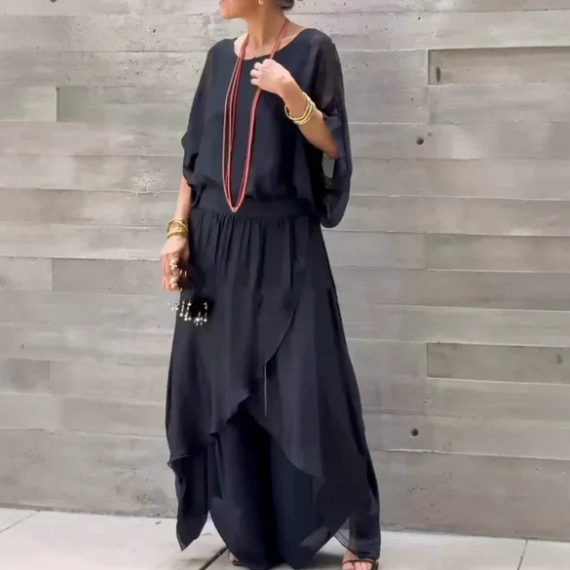 Package includes: 1 * loose top and slit pants with a wide leg made of chiffon, 2-part set