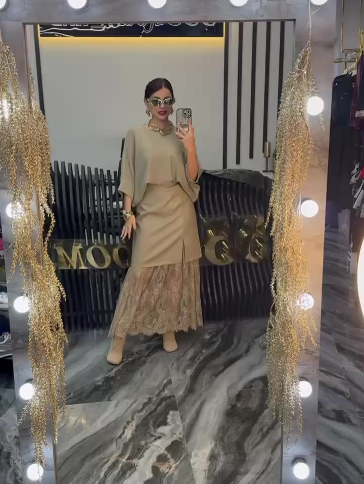 • Elegant Details: Features a relaxed-fit top and a midi skirt with a layered lace hem, creating a graceful silhouette. The soft fabric and intricate lace add a touch of romance, while the cohesive design ensures a polished, put-together vibe.