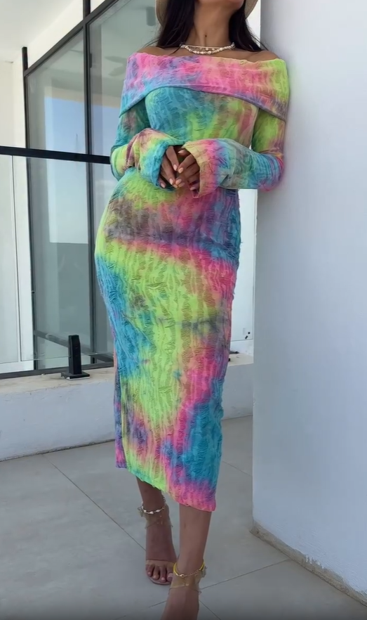 Sexy women's fashionable tie dye ripped design dress