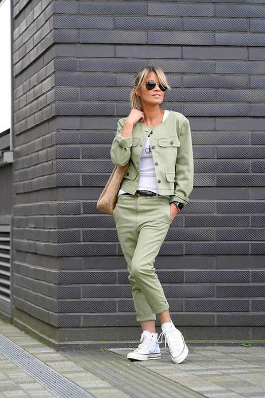 Spring round neck fashionable short jacket + straight pants