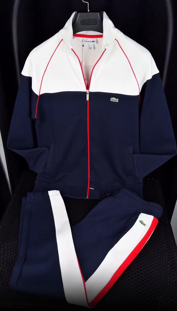 Stand-up collar zipper jacket with side stripes and casual pants, a fashionable suit