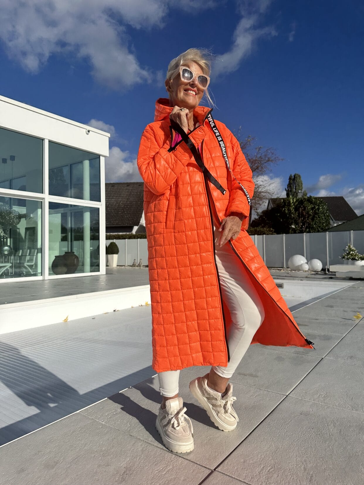This longline coat features a quilted design for extra insulation, a hood for added practicality, and a sleek zip closure. Whether you’re braving cool weather, running errands, or just want to inject some fun into your outfit, it’s the perfect choice. The neon hues ensure you stand out in any crowd, while the quilted fabric keeps you cozy and comfortable.