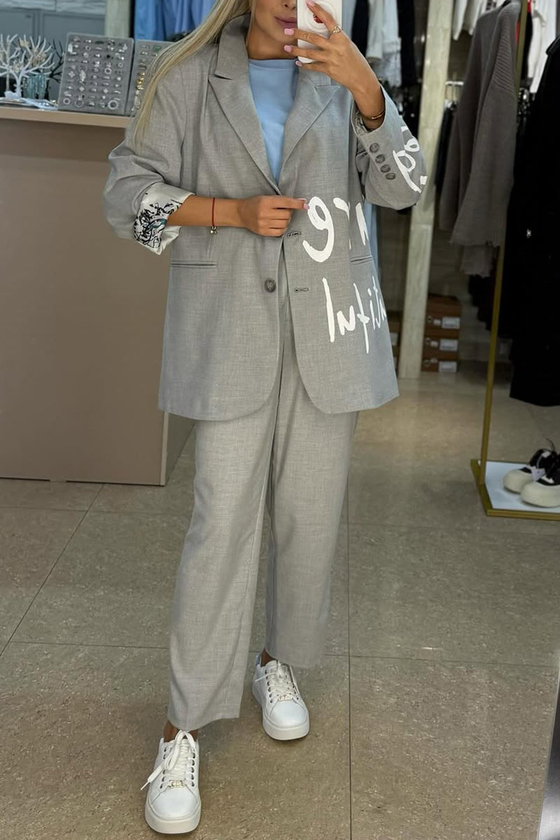 Women Lapel Print Letter Jacket + Pants Commuter Temperament Set