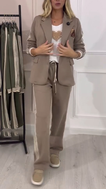 Women Lapel Vertical Striped Jacket + Pants Commuter Suit