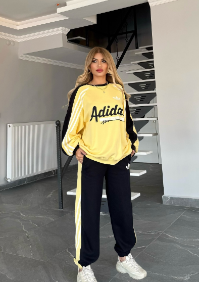 This loose and comfortable women's sweatshirt sports casual set features a stylish contrasting color scheme. The loose fit of the top adds a casual feel and a relaxed feel.