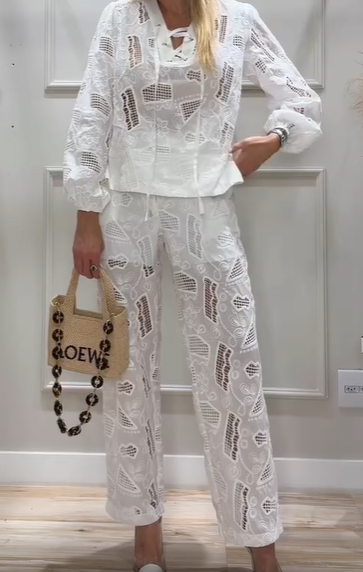 Women's Fashion Hollow Cropped Top + Hollow Wide-Leg Pants