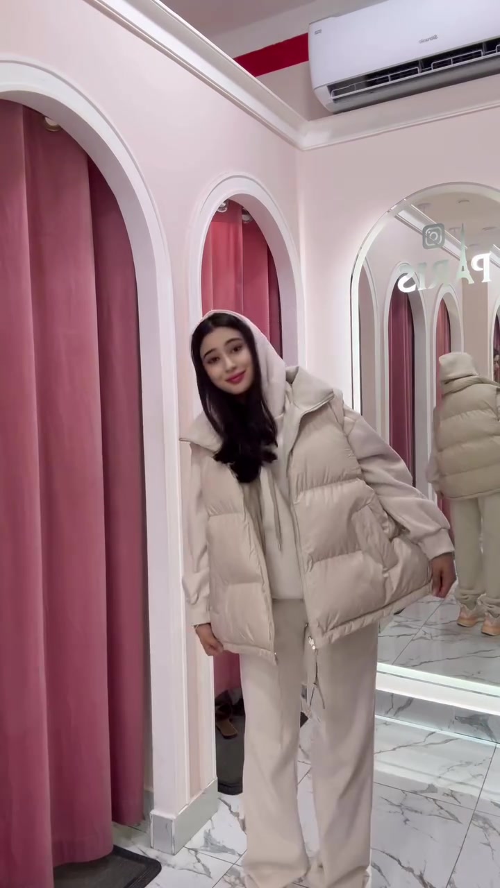 This stylish three-piece women's set, featuring a hooded down vest, a casual top, and wide-leg pants, perfectly combines comfort and style. The hooded down vest features a simple design and is filled with high-quality down for excellent warmth. The hood adds a casual touch, making it versatile enough to wear alone or layered with other items.