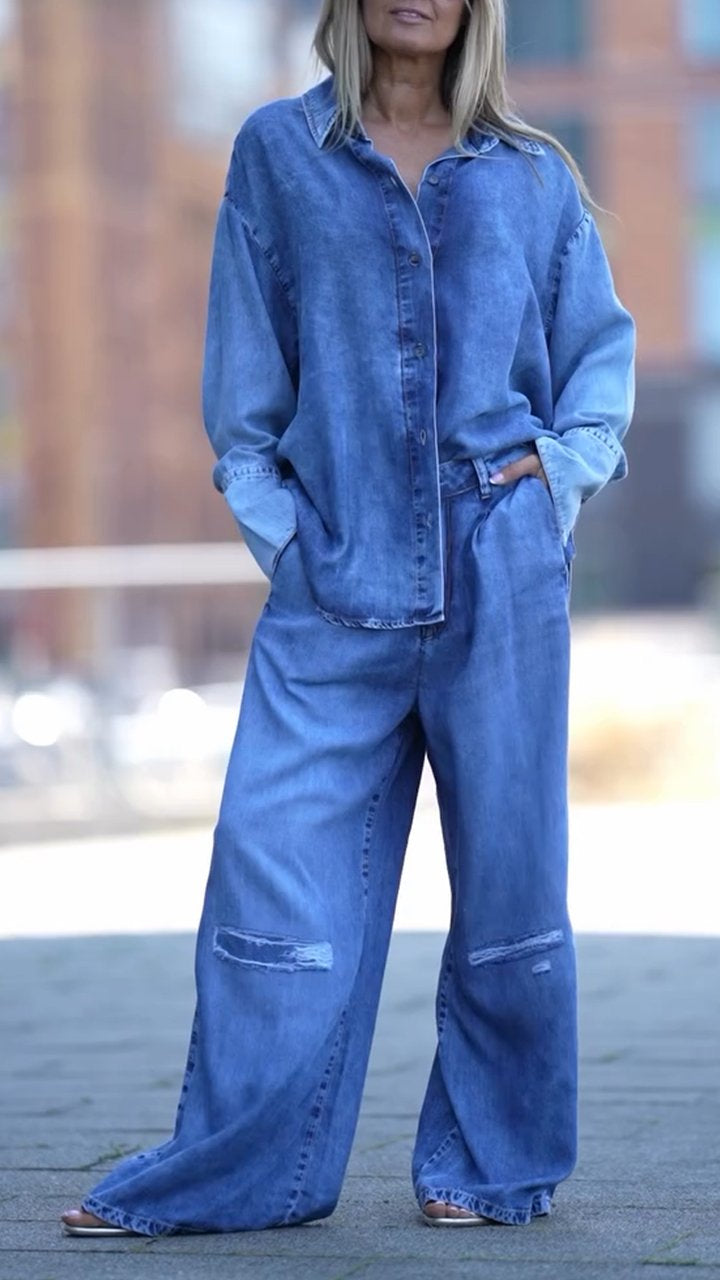Women's Lapel Loose Tencel Denim Casual Suit