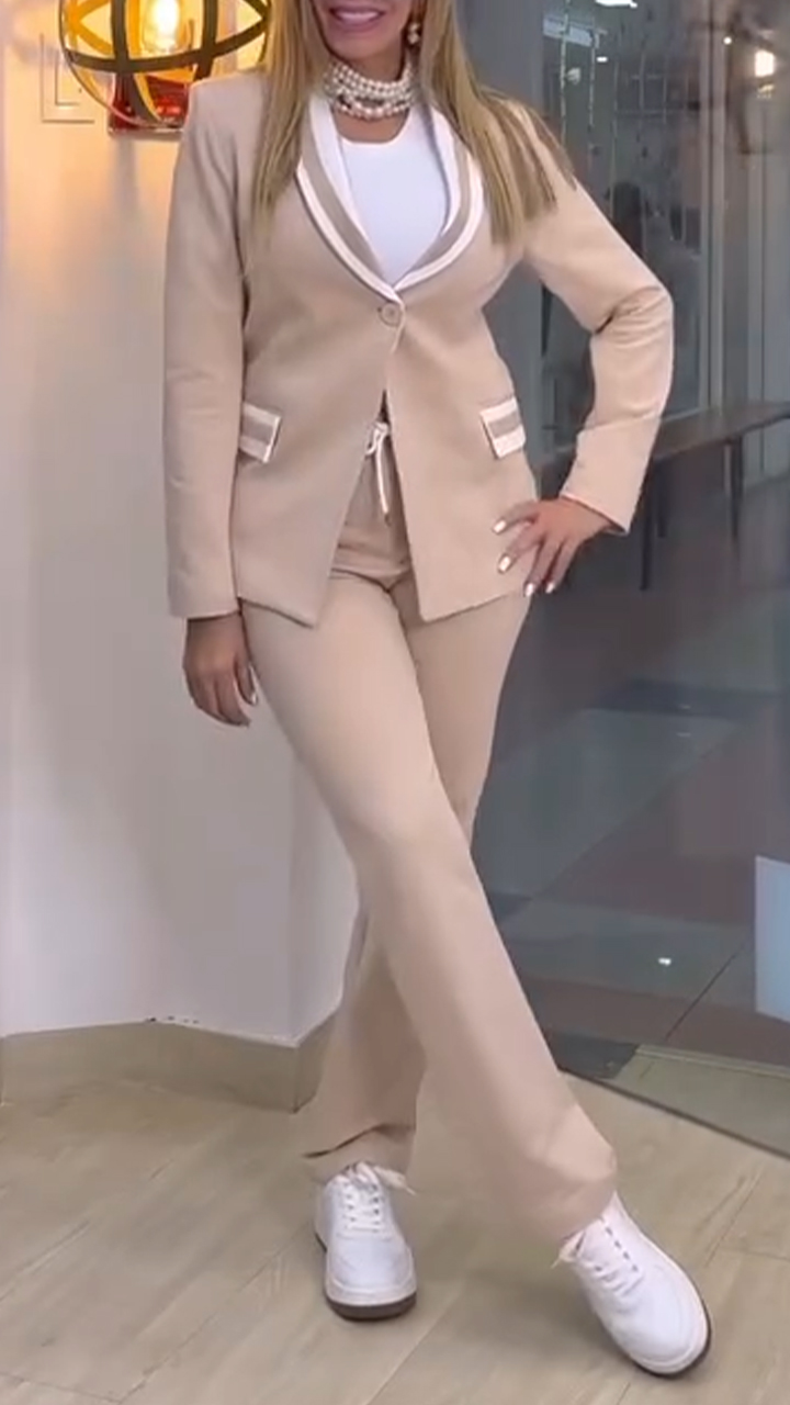 Women's Lapel Striped Casual Suit