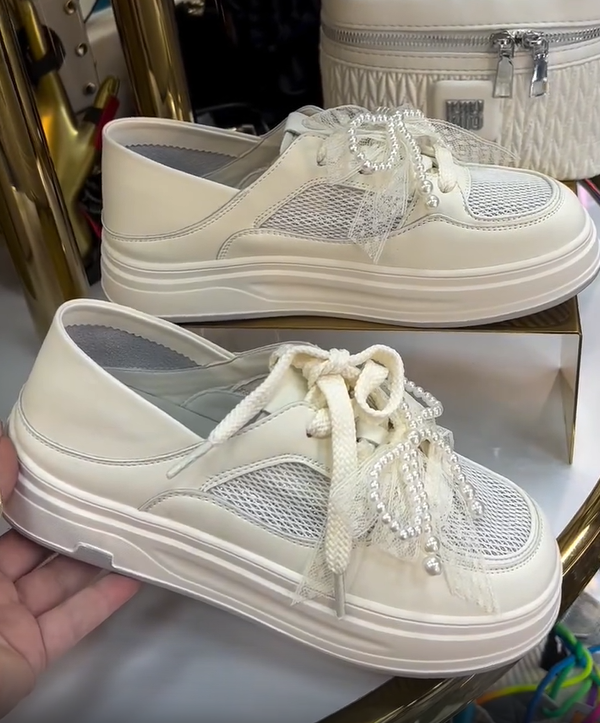 Women's mesh breathable pearl bow casual sports shoes