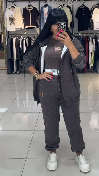 The three-piece set showcases a trendy, comfortable look, allowing you to exude energy and effortlessly create a laid-back, chic everyday look.